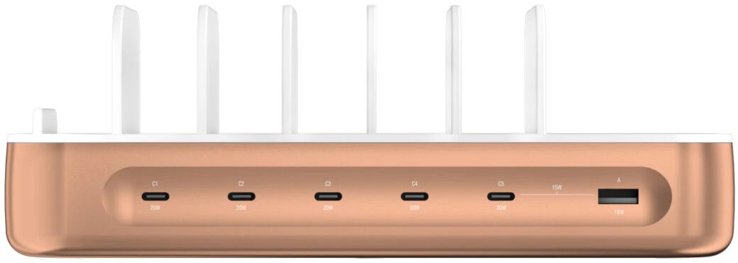 Die fünf USB-C-Ports der Ladestation Team liefern jeweils 20W Leistung, sodass deine Geräte deutlich schneller geladen werden können als mit den meisten Standardladegeräten. Egal, ob Smartphone, Tablet, Kopfhörer oder andere Geräte: Diese USB-Charging-Station bietet dir immer eine stabile und effiziente Ladeleistung. Das macht sie zur idealen Ladestation für mehrere Geräte, mit der du Zeit sparst und immer einsatzbereit bleibst.