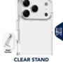 Clear Stand ist die transparente Schutzhülle mit integriertem Standfuß – ideal für freihändiges Telefonieren, Streaming oder Arbeiten. Sie besteht aus einem harten Rücken und stoßdämpfendem Gummirahmen und schützt zuverlässig vor Stößen und Stürzen. Erhöhte Kanten schützen Bildschirm und Kamera. Die antibakterielle Oberfläche und das Anti-Vergilbungs-Material sorgen für dauerhafte Hygiene und Klarheit.