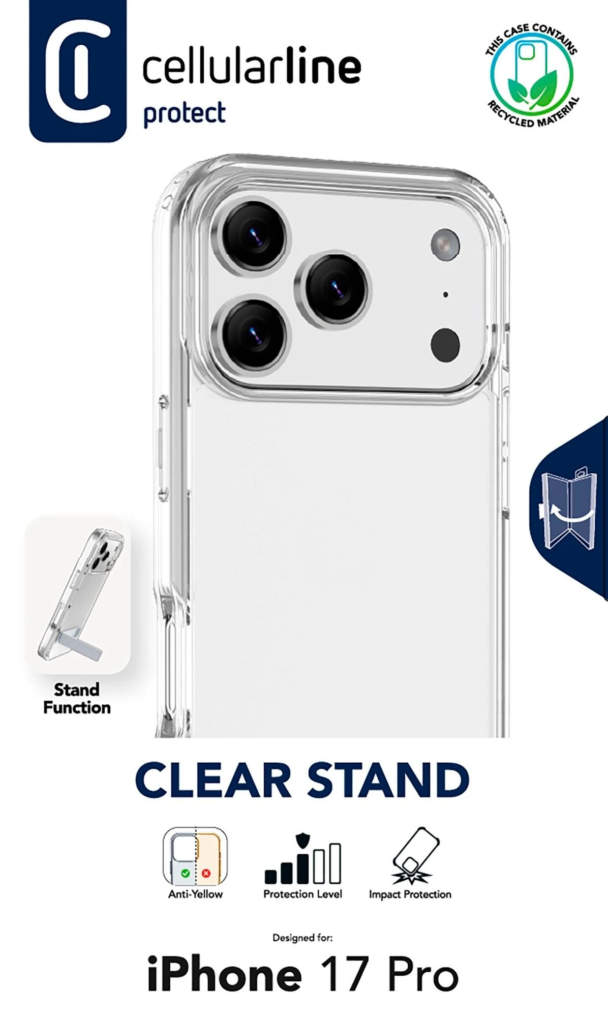 Cellularline Clear Stand Case iPhone 17 Pro transparent