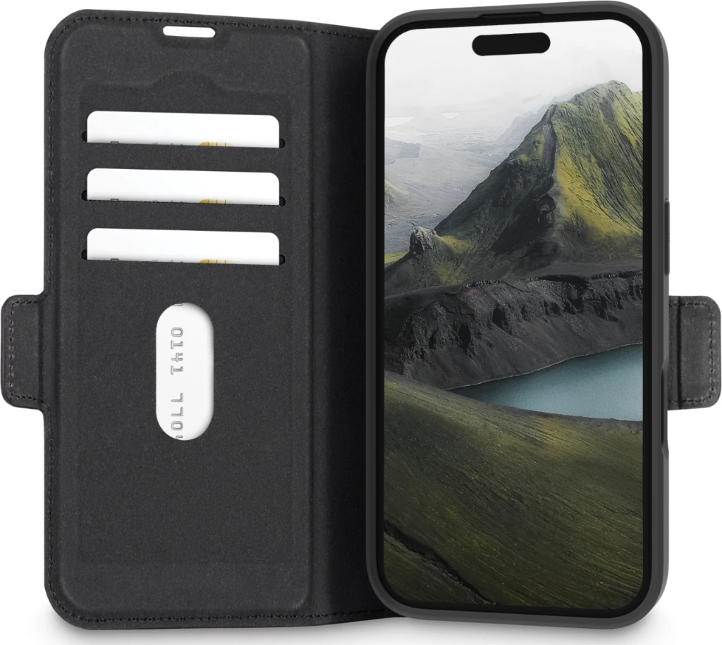Oslo Pro ist eine stoßfeste Folio-Tasche aus recyceltem Kunststoff mit einer Oberfläche, die aussieht und sich anfühlt wie Leder. Dank der faltbaren Rückseite können Sie Videos im Querformat freihändig ansehen.