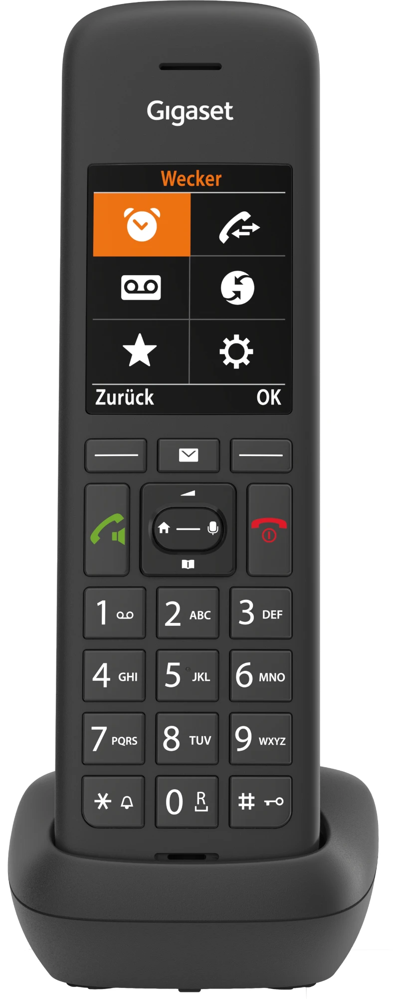 Schnurloses DECT-Telefon-Kombination mit integriertem Anrufbeantworter (20 Min. Aufzeichnung) im Einstiegsbereich, bestehend aus einer schnurgebundenen Basisstation und einem Mobilteil mit Ladeschale, geeignet für den Standardanschluss.