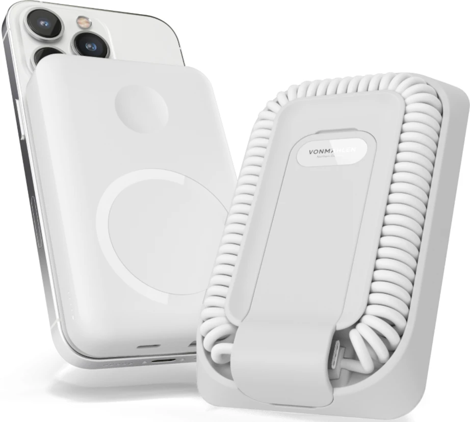 allroundo pro ist unser All-in-One Lade- und Datenkabel und verfügt über eine magnetische und induktiv ladefähige Powerbank (10.000 mAh). Diese lässt sich nach Belieben magnetisch an deinem Smartphone anbringen. Die integrierten Magnete sorgen dabei für eine perfekte und sichere Positionierung am Smartphone. allroundo Pro verfügt über ein USB-C zu USB-C Kabel und bietet zeitgleich Adapter für USB-A und Micro-USB. Die Datenübertragungsrate beträgt 480 Mbit/s. Für maximale Effizienz kann allroundo pro zeitgleich mit deinen Endgeräten wie Smartphone und Smartwatch (integrierter Apple Watch Ladesockel) geladen werden.